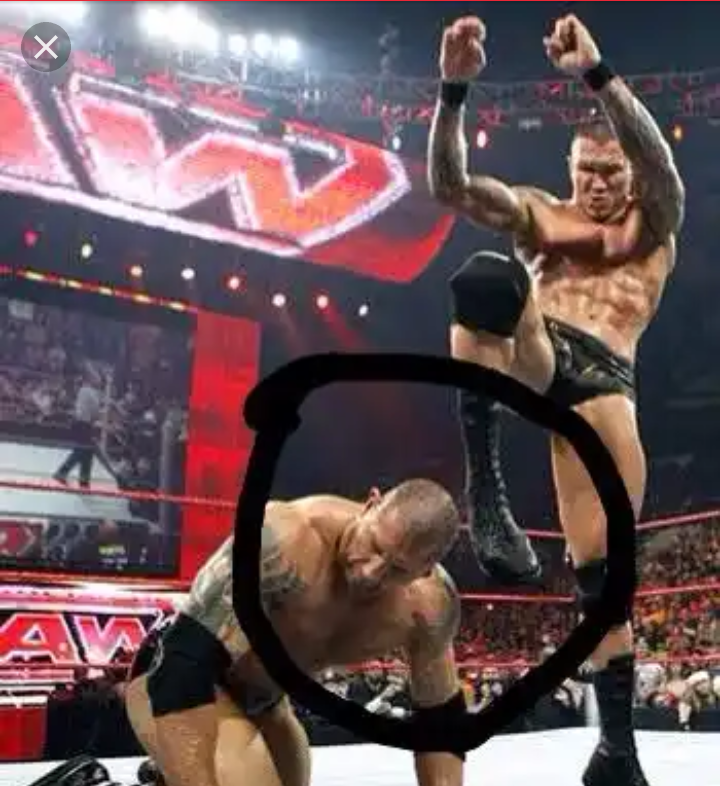 This is a photo of Randy Orton faking a kick to the head of his opponent.